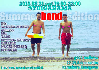 8/31(SAT)は夏bond!!@ 由比ケ浜 good mellowsにてNAOKIがDJ出演します。